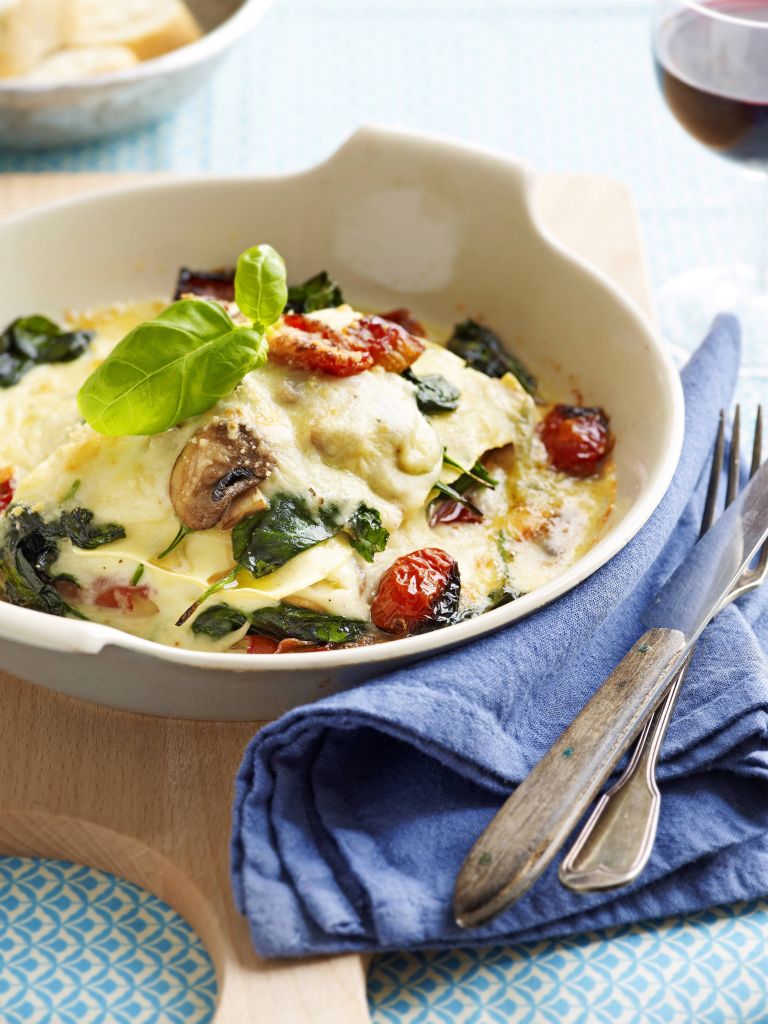 Vervang de bechamel door losgeklopte ricotta, mascarpone of kruidenkaas. Schep ‘m rechtstreeks tussen de laagjes en je krijgt een lichte, zachte vulling die de lasagne niet te zwaar maakt. De ricotta of cottage cheese kun je nog op smaak brengen met citroenrasp, kant-en-klare pesto of fijngehakte zongedroogde tomaatjes.