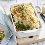 Heb je door omstandigheden de ovenschotel toch al volledig in de oven laten garen en wil je ze daarna opnieuw opwarmen? Dek ze dan af met aluminiumfolie en warm ze een halfuurtje op op 160°C. De laatste tien minuten kun je de aluminiumfolie verwijderen zodat het korstje niet wak wordt.”