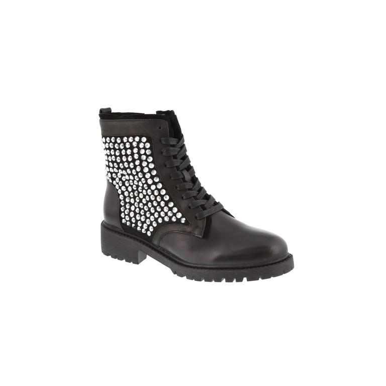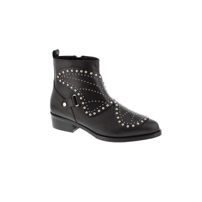 Zwarte lederen boots met gouden studs (€ 215 – shop het hier)