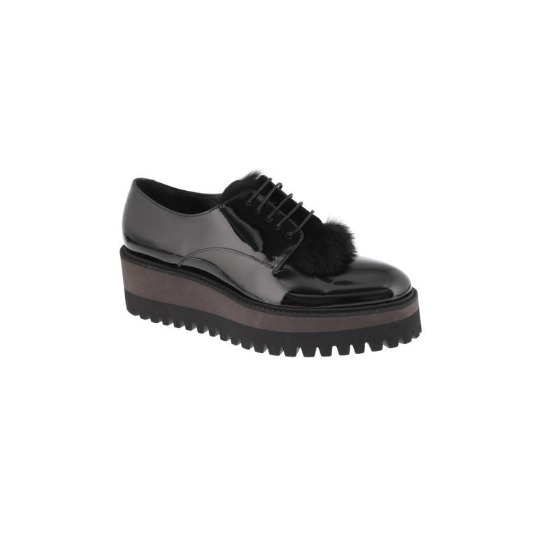 Zwarte veterschoen met pompon (€ 185 – shop het hier)
