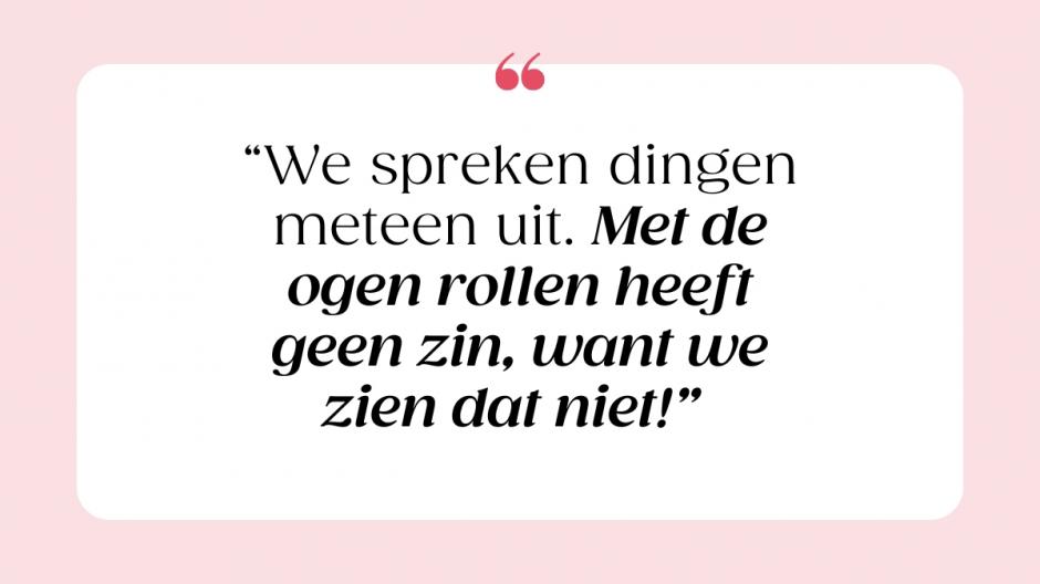 Daisy: “Als ik me ergens aan erger, spreek ik dat meteen uit. Met de ogen rollen heeft weinig zin, hé. We zien dat toch niet van elkaar.”