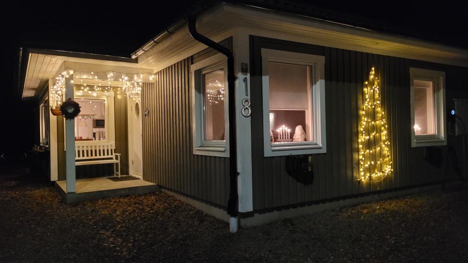 Prachtig, toch? Dat moment wanneer je onze straat inrijdt en al die stijlvol verlichte huizen je welkom heten. Geen bonte flikkerlichtjes of complete lichtshows, maar zacht warm wit, elegante papieren sterren voor de ramen en die typische julljusstakar, de elektrische adventskaarsen die vanaf de eerste advent overal op vensterbanken verschijnen. Het voelt alsof we samen wat licht maken in de donkerste weken van het jaar.