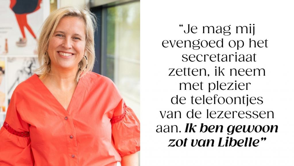 “Ja! Weet je hoe ik dat weet? Op momenten dat het leven klappen uitdeelt, is Libelle mijn houvast, zoals bij het overlijden van mijn vader. Dan heb ik niet het gevoel: ik moet weer aan het werk, wel: ik kan even opnieuw opladen. En die verknochtheid heeft niks met mijn functie te maken. Je mag mij evengoed op het secretariaat zetten, ik neem met plezier de telefoontjes van de lezeressen aan. Ik ben gewoon zot van Libelle.”