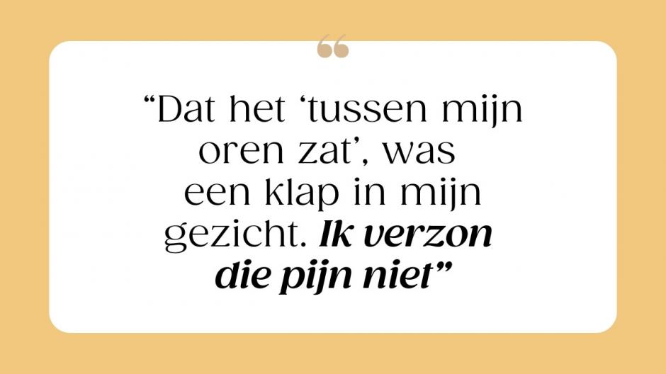 Maar na de ingreep, de derde al intussen, bleef toch de pijn. Ik voelde dat er iets niet klopte, maar opnieuw kreeg ik te horen dat ik het me inbeeldde. Het was de gynaecoloog van mijn moeder die me écht serieus nam. ‘Er is met jou geprutst’, zei hij.