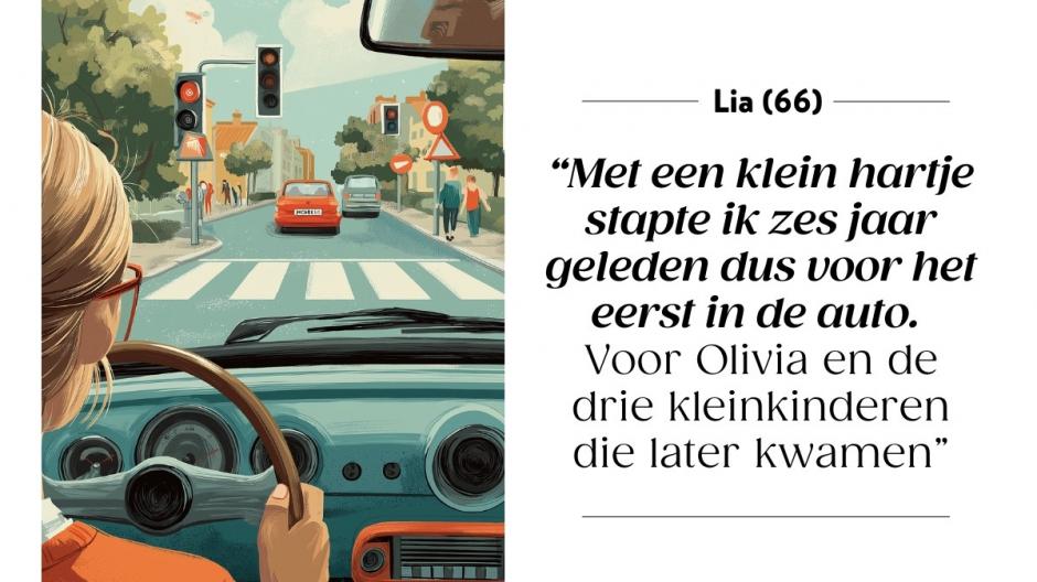 Lia (66): “Elke oma is verliefd op haar kleinkind(eren). Dat is bij mij niet anders. Toen mijn dochter me vertelde dat Olivia drie dagen in de naschoolse opvang moest blijven, opperde ik meteen dat ik haar op maandag en vrijdag wel van school zou halen. Dan zou ze nog maar één dag naar de opvang moeten. ‘Maar mama, hoe dan? Je hebt geen rijbewijs, laat staan een auto.’ Met een klein hartje stapte ik zes jaar geleden dus voor het eerst in de auto. Voor Olivia en de drie kleinkinderen die later kwamen. Ik rij wel enkel naar school en terug, en ook naar de supermarkt, als het pijpenstelen regent. Maar vraag me niet om de Brusselse Ring te trotseren, want daar komen ongelukken van.”
