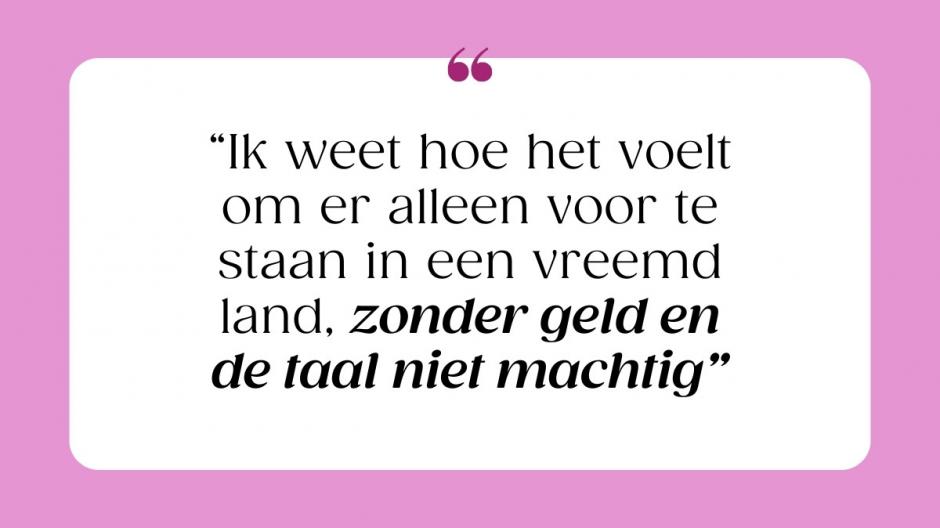Ik weet hoe het voelt om ontheemd te zijn, om er alleen voor te staan met een kind, om geen geld te hebben, om de taal niet te spreken en niet te kunnen uitleggen wat je nodig hebt.