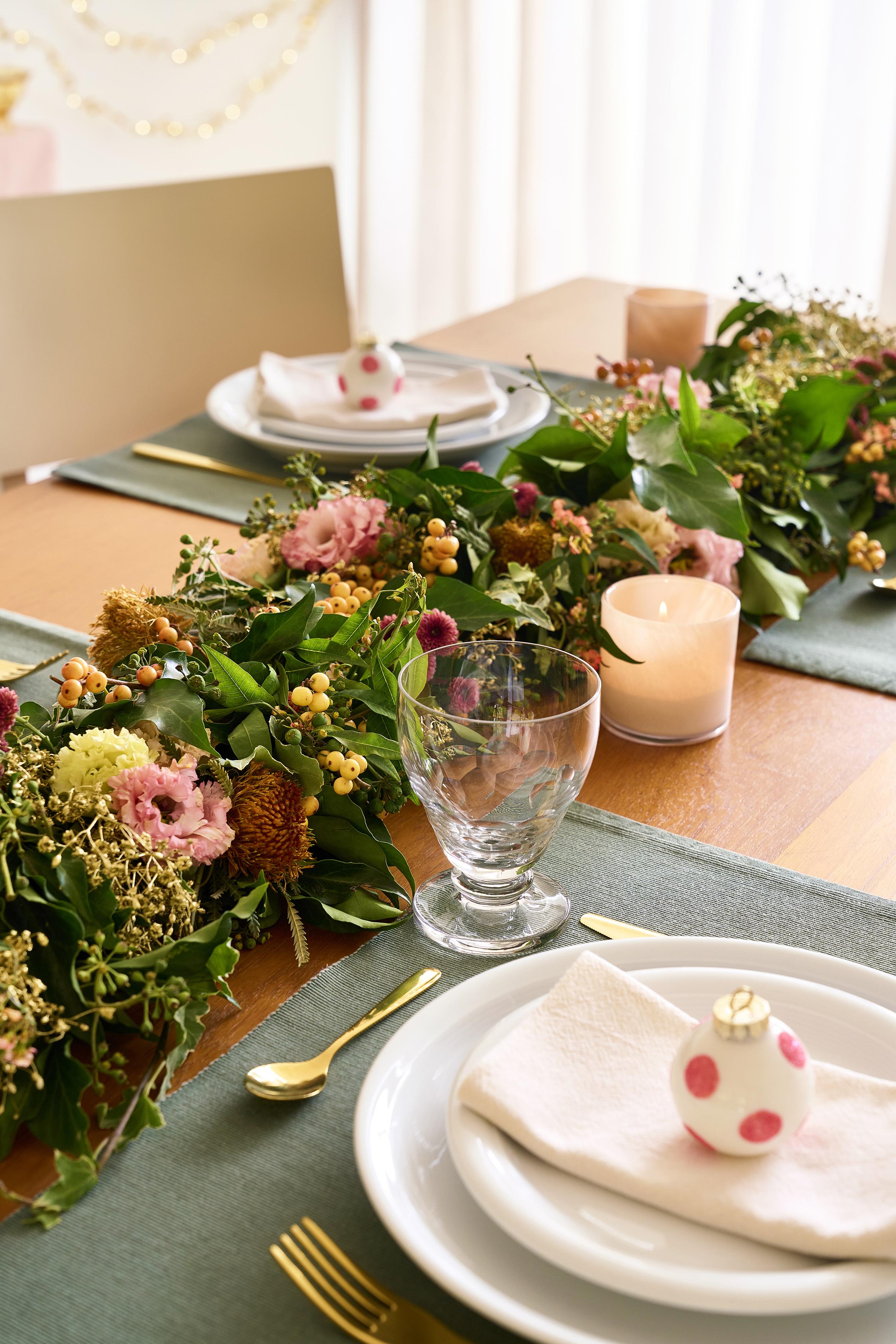 Kaat Verbruggen: “Als floriste ben ik elke dag bezig met bloemen en groen, en ik hou er vooral van unieke creaties te maken. Met kerst gaan alle registers open. Deze keer pak ik graag uit met een guirlande die je op tafel kunt draperen. Het lijkt moeilijk, maar is het niet, gewoon binden en wikkelen. Volg je gevoel.”