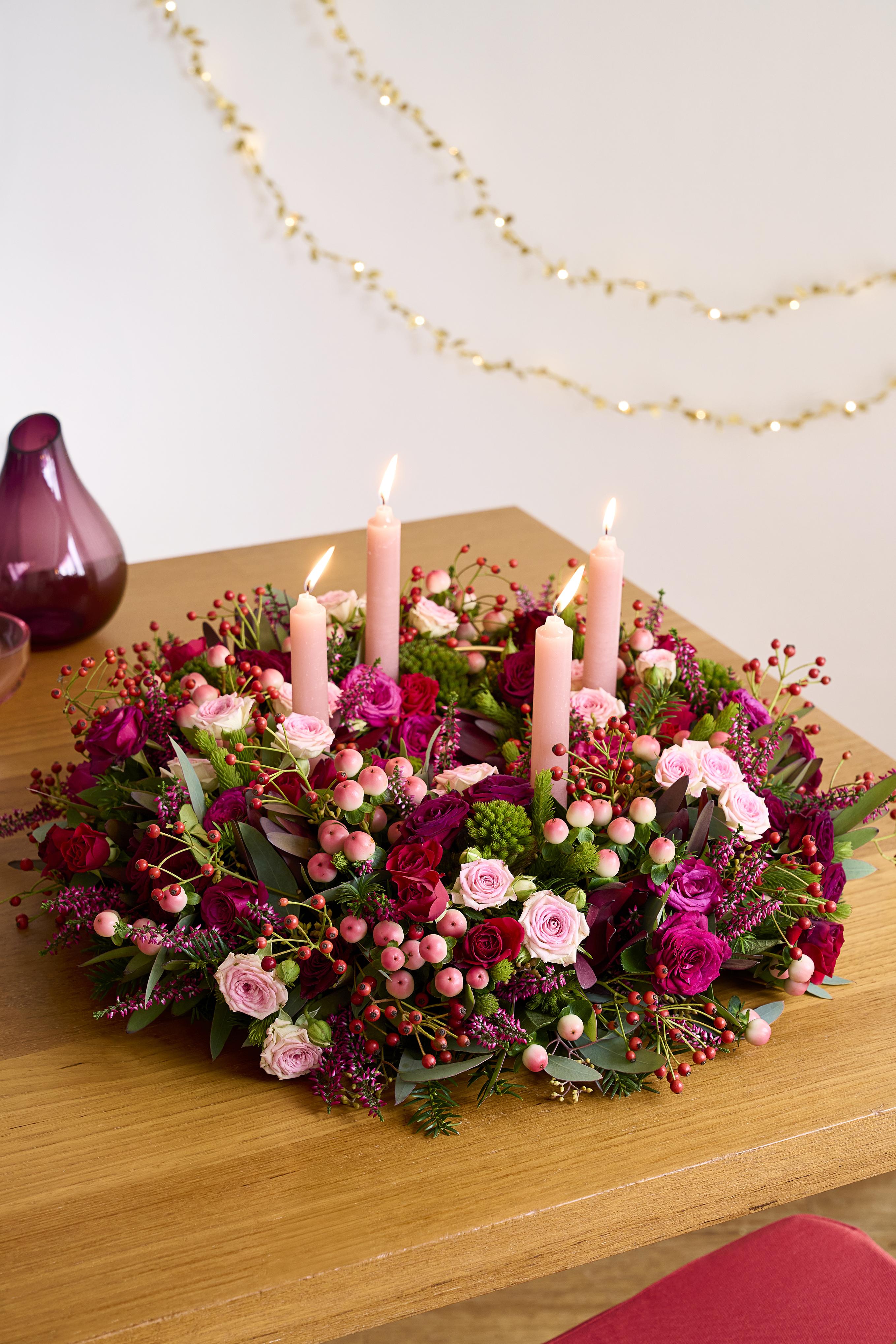 Mieke Pauwelyn: “Een simpele tak groen of een bloemstukje brengt meteen sfeer in deze gezellige periode. Ik maakte een royale krans met een massa bloemen, want het is feest, toch? Naarmate het groen en de bloemen indrogen, krimpen ze wat. Zo kun je in het nieuwe jaar nog genieten van een mooi gevulde, gedroogde krans.”