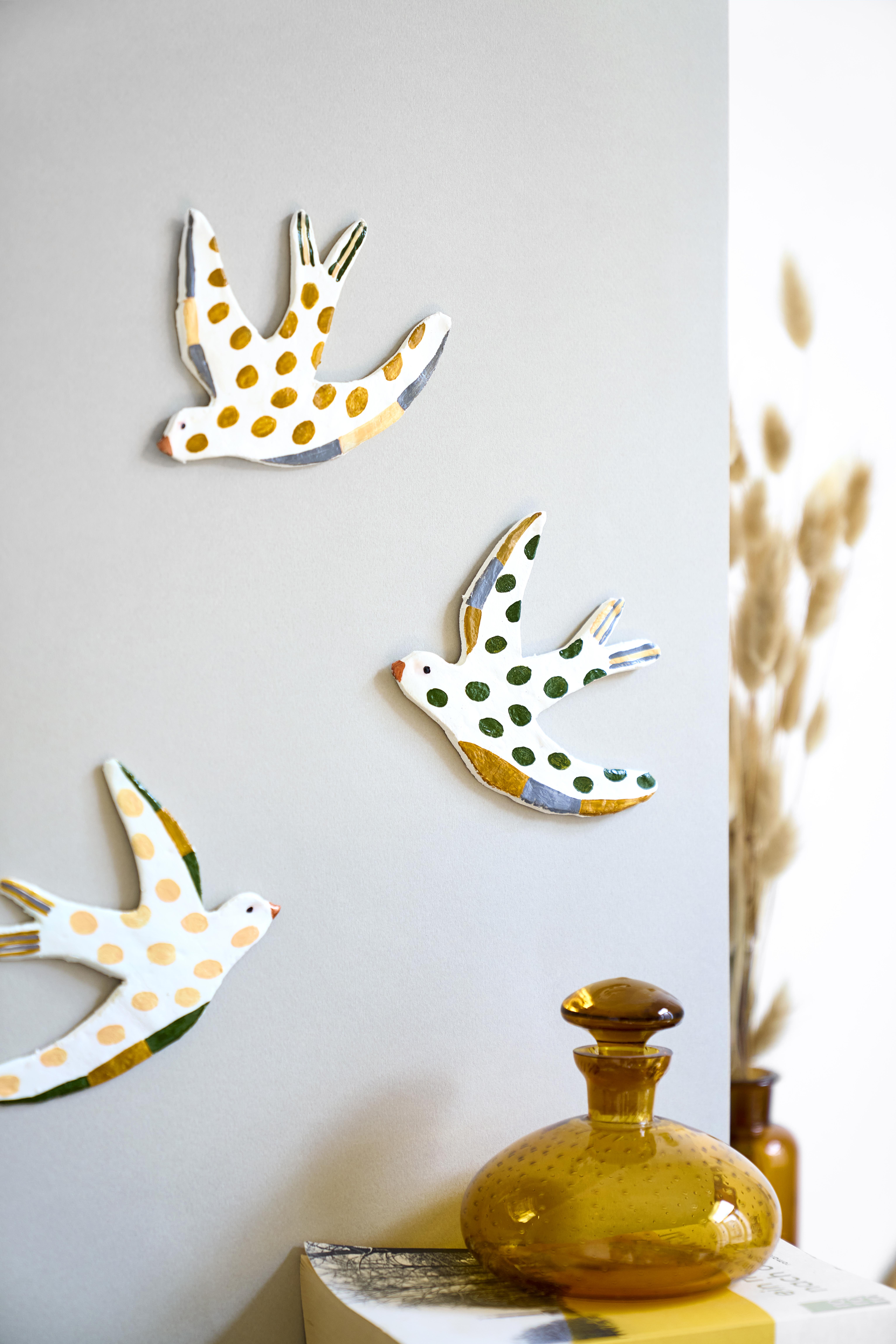 Deze zwaluwen zijn snel gemaakt, maar geveninstant cachet aan je interieur. Per drie of vijf maken ze een mooi geheel aan de muur.