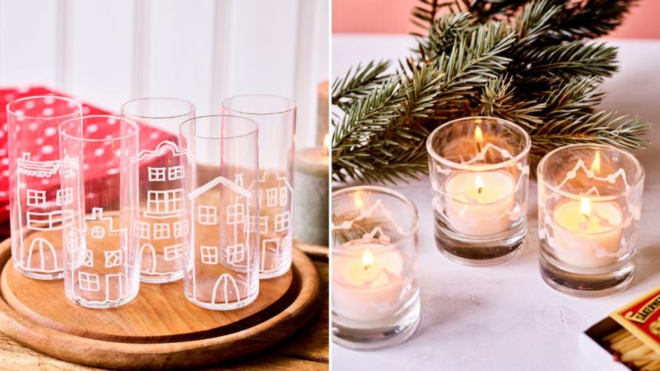 Kleine theelichthouderglaasjes geef je in een-twee-drie een make-over door er feestelijke versieringen op te tekenen. Zijn de eindejaarsfeesten voorbij? Gewoon afvegen met een vochtige doek en hartjes (Valentijn) of bloemen (lente) erop tekenen!
