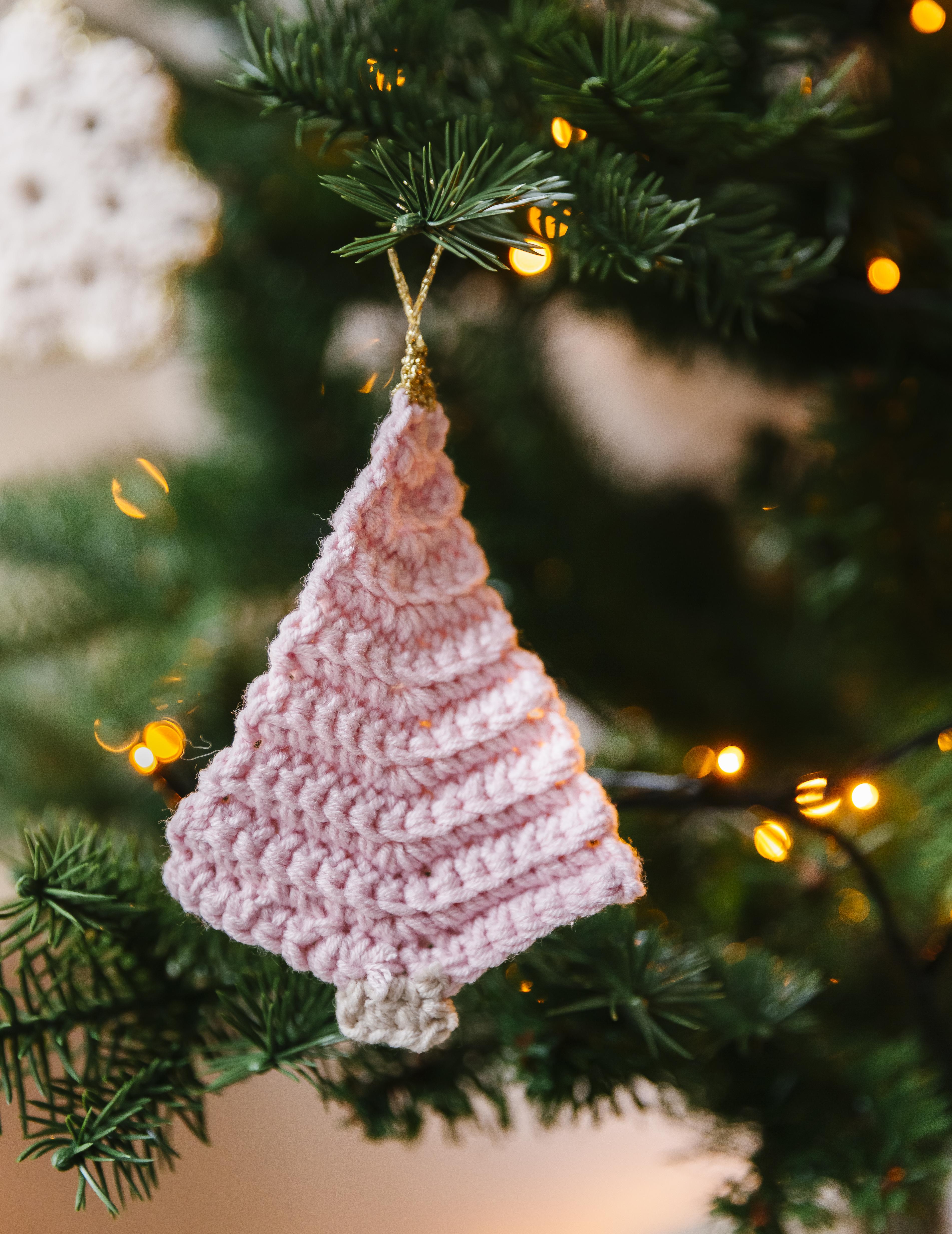 Een haaknaald, een klein beetje garen en een snuif kerstmagie – meer heb je niet nodig om dit schattige kerstboompje te haken.