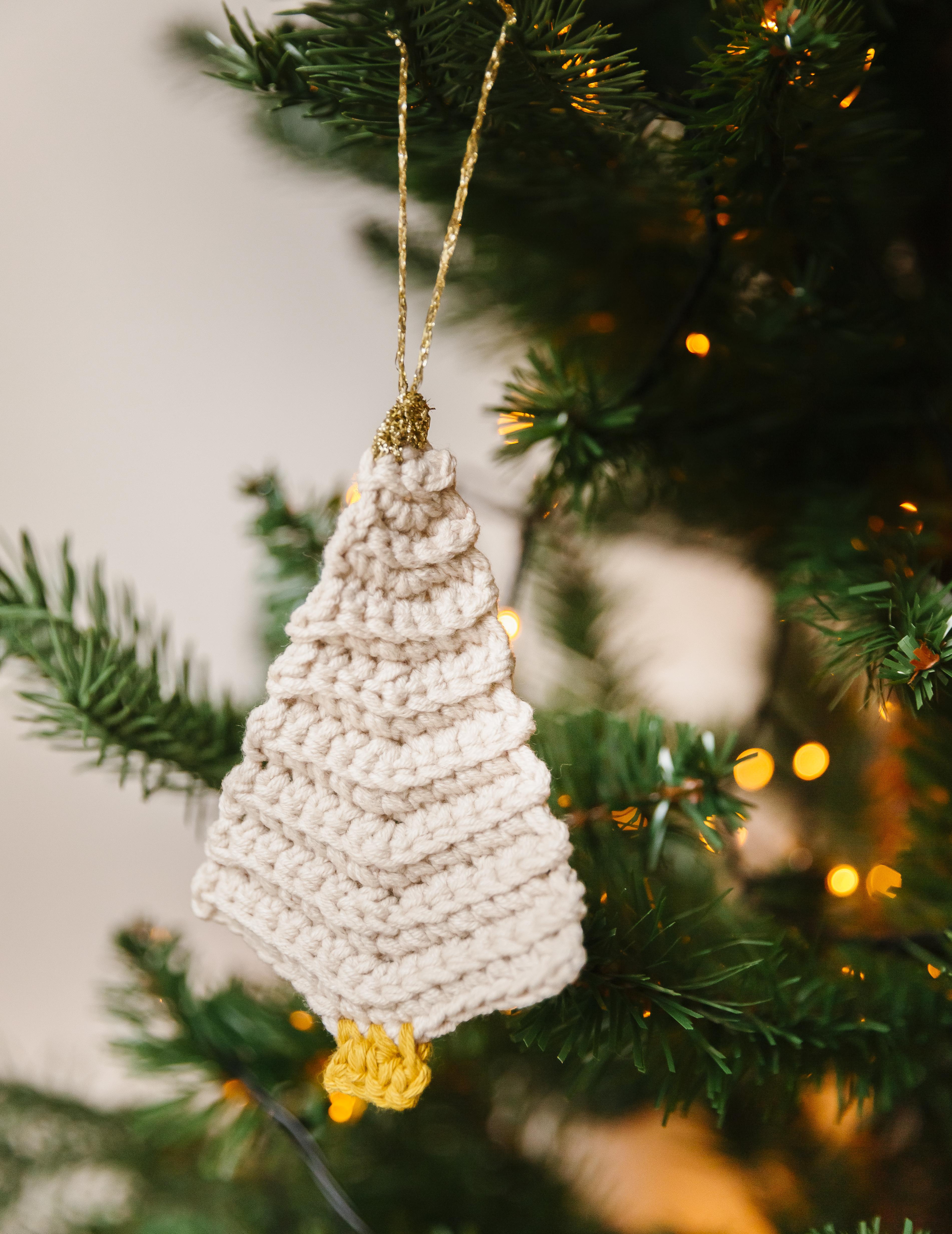 Het mooie reliëf in dit kerstboompje zorgt voor een uniek effect. En toch is het heel eenvoudig om te haken! De werkbeschrijving van het dennenboompje vind je hier.