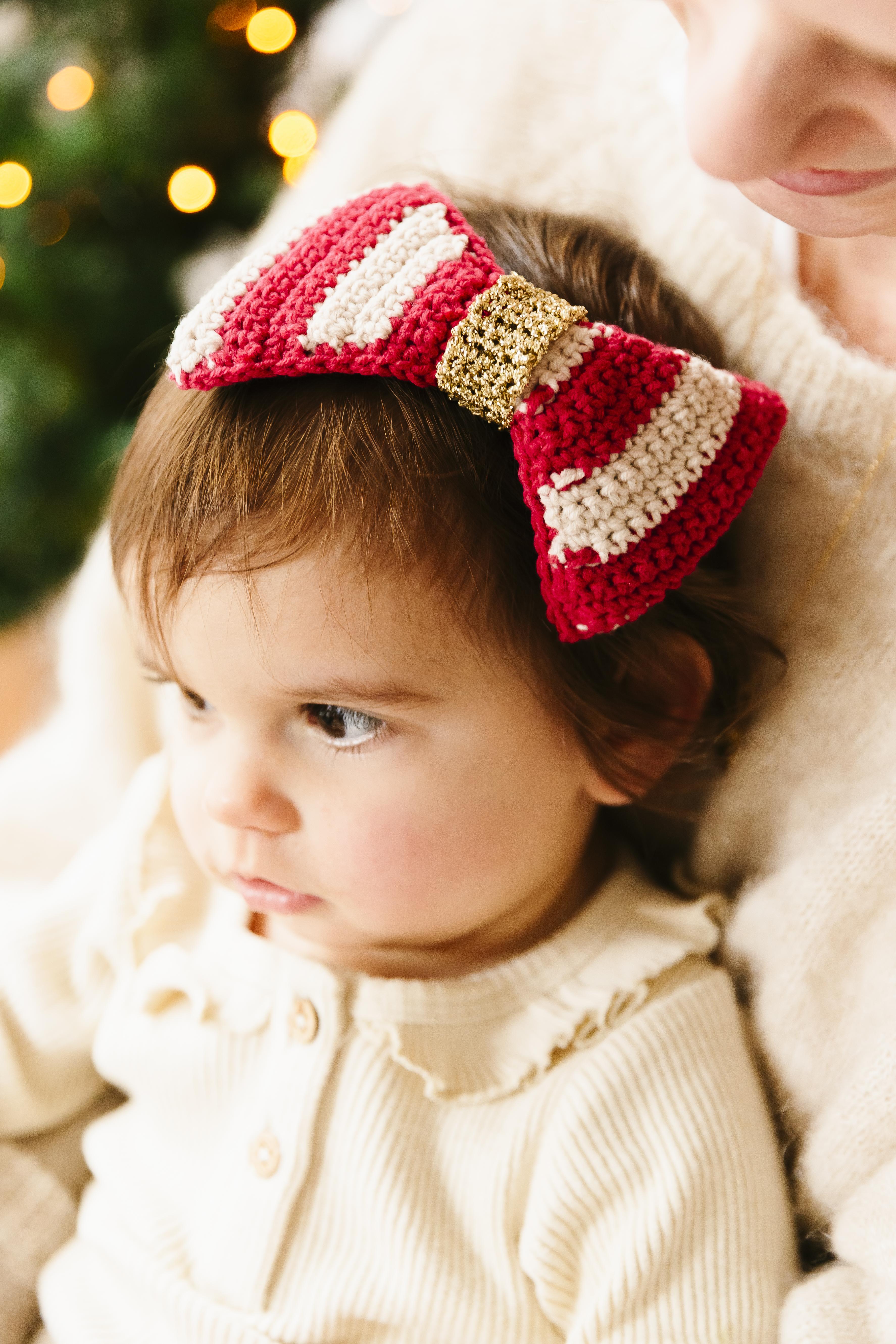 Met een strik oogt alles meteen feestelijk, toch? Bevestig ’m op een haarband of een speldje en laat je (klein)dochtertje stralen tijdens de eindejaarsperiode. De werkbeschrijving van de strik vind je hier.