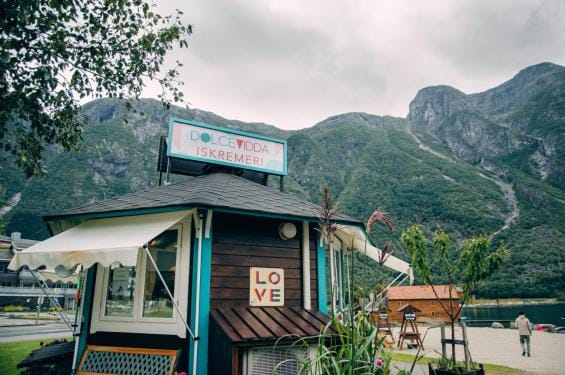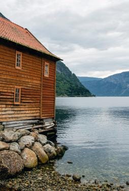 We rijden verder langs de Stalheimskleiva, de steilste weg van Noorwegen, met een paar haarspeldbochten om u tegen te zeggen, om daarna op de langverwachte Flåmsbana te gaan sporen, een van de mooiste treinritten ter wereld wordt gezegd. Een panoramische houten trein rijdt ons al piepend en kreunend de bergen door, waar ranke watervallen de diepte in storten.