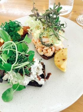 Ik kan de lokroep van de vele restaurantjes met hun smörrebröd niet weerstaan en eet een ‘lunch platter’ met garnalen en haring-salade. Heerlijk.