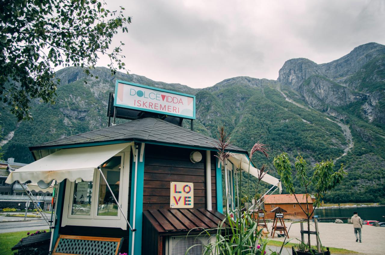 Tijdens een stop duikt in de verte plots ‘Huldra’ tussen de rotsen op, een trol die de gedaante van een mooie vrouw heeft aangenomen en die met haar gezangen alle mannen verleidt. Een beetje toeristisch is het wel, maar ook ontroerend mooi. En op de terugweg zitten alle mannen terug op de trein. Oef, want het schip wacht nooit op laatkomers.