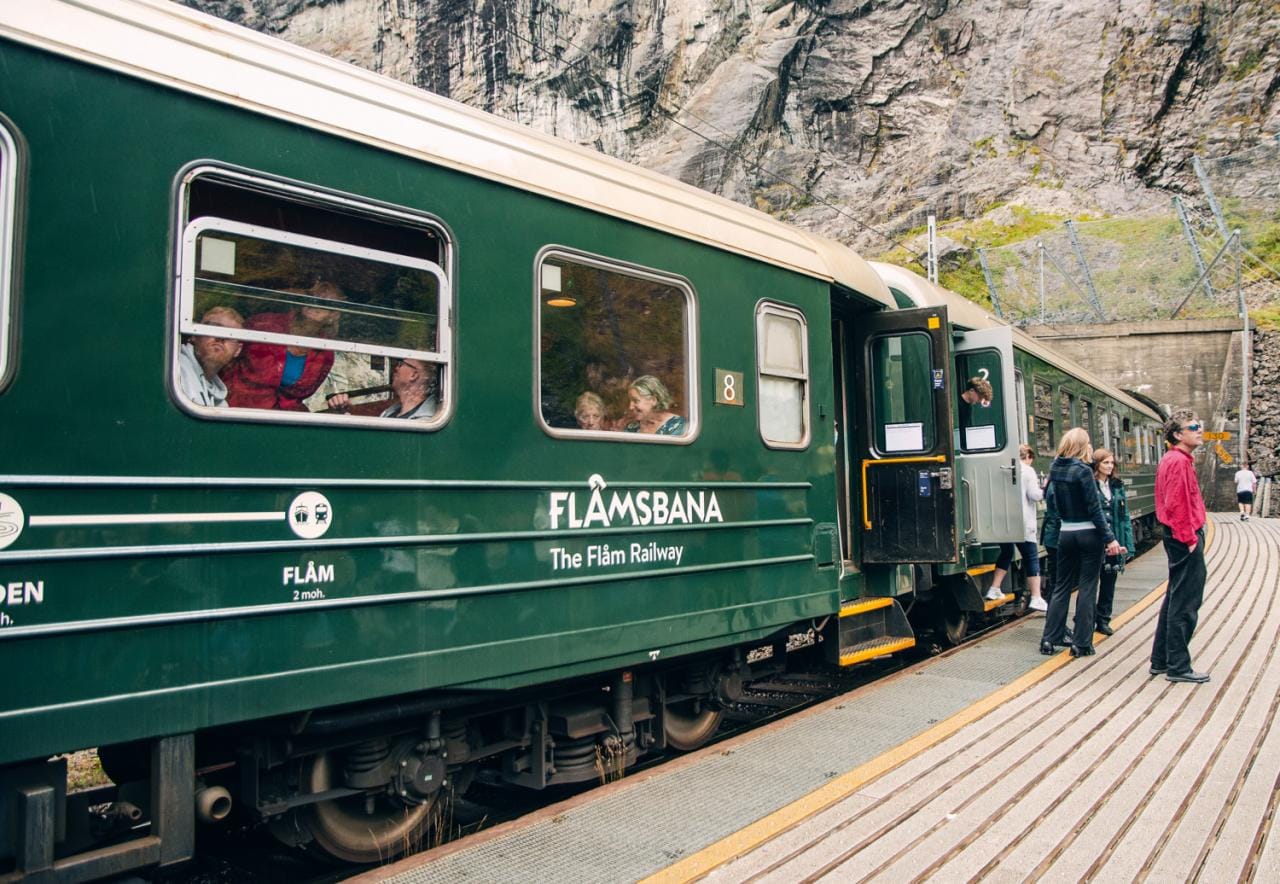 1. Prachtige treinreis op de Flåm-spoorlijn, met onderweg vele watervallen.