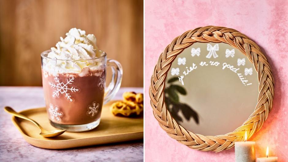Een kop warme chocolademelk ziet er extra sfeervol uit met stickers van sneeuwvlokjes. Kleef de stickers best niet te hoog of laat een uitsparing op de plaats waar je mond de tas raakt.