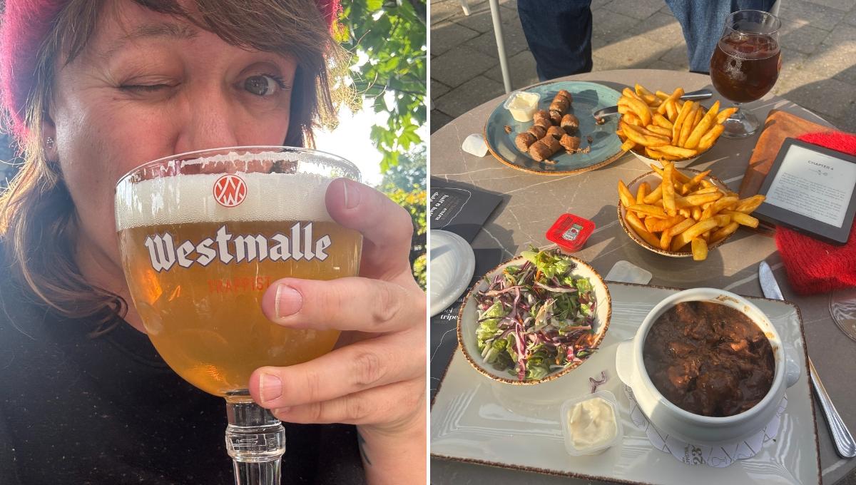 Omdat Dex en ik allebei een gratis consumptie kregen bij Café Trappisten, besluit ik daar ook iets te eten. Dex kiest frietjes met curryworst, ik stoofvlees. Mét bier in de saus, natuurlijk. Tijdens het wachten drink ik een Westmalle Duo, terwijl Dex zich helemaal uitleeft in de grote speeltuin.