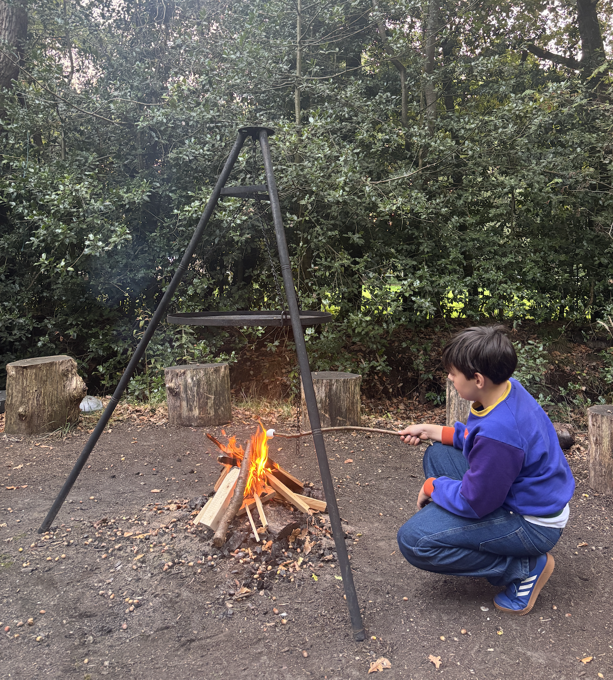 Na het avondeten rijden we terug naar De Swaenhoeve. Eigenaar Yves vertelde mij voor ons verblijf aan de telefoon dat we marshmallows mochten roosteren boven het kampvuur en dat is Dex uiteraard niet vergeten.